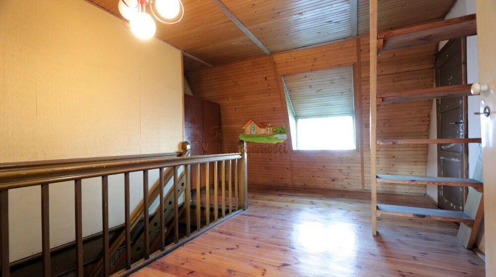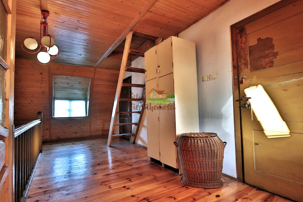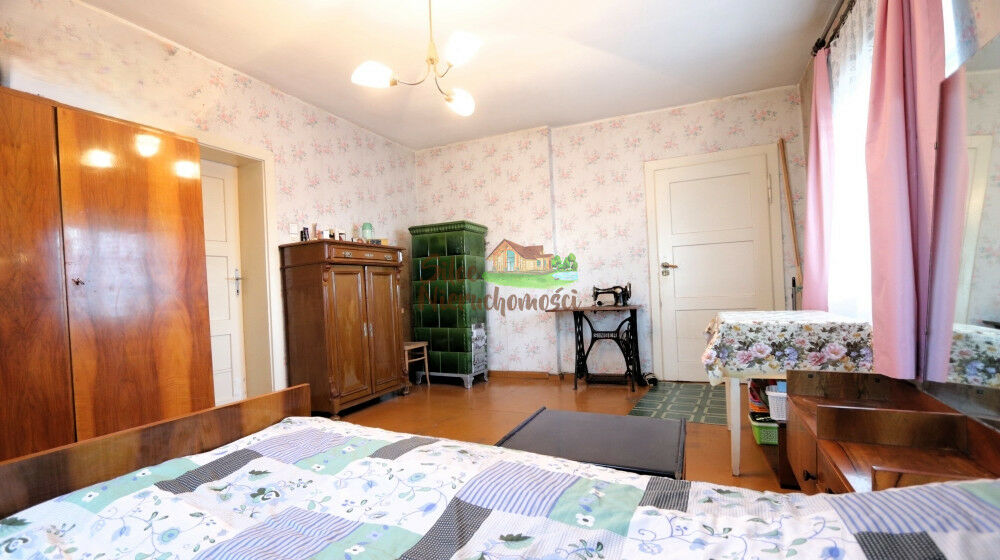 Okna drewniane. Powierzchnia zabudowy domu została określona na 83 m2, zaś powierzchnia użytkowa na 101 m2. Ogrzewanie na chwilę obecną jest z pieca węglowego zlokalizowanego w kotłowni, który przesyła ciepło na kaloryfery na obydwu kondygnacjach. Na działce poza domem są zabudowania gospodarcze. Pierwsza część zabudowań jest doklejona do domu, w której jest dodatkowe WC oraz spiżarnia. Dodatkowo w tym samym ciągu budynku są jeszcze pomieszczenie gospodarcze oraz mała obora, obydwie z dostępem od podwórka. Na działce jest jeszcze drewniany sporych rozmiarów wolnostojący garaż/szopka. Działka jest ogrodzona. Budynek wybudowany został z cegły, poszycie dachu to dachówka ceramiczna. Dom podłączony jest do gazowej sieci miejskiej.