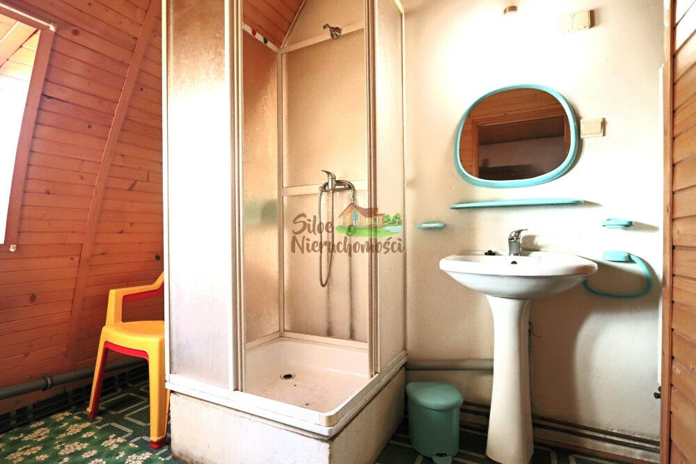 Na piętro wiodą drewniane schody, i na górnej a zarazem rozkładowej kondygnacji zastaniesz 2 pokoje, aneks kuchenny, łazienkę z WC.