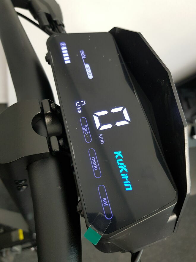 KuKirin G2 (model na rok 2025) hulajnoga elektryczna o zacięciu terenowym, wyposażona w silnik o mocy 800 W i akumulator 15 Ah, co pozwala na jazdę z prędkością do 45 km/h.